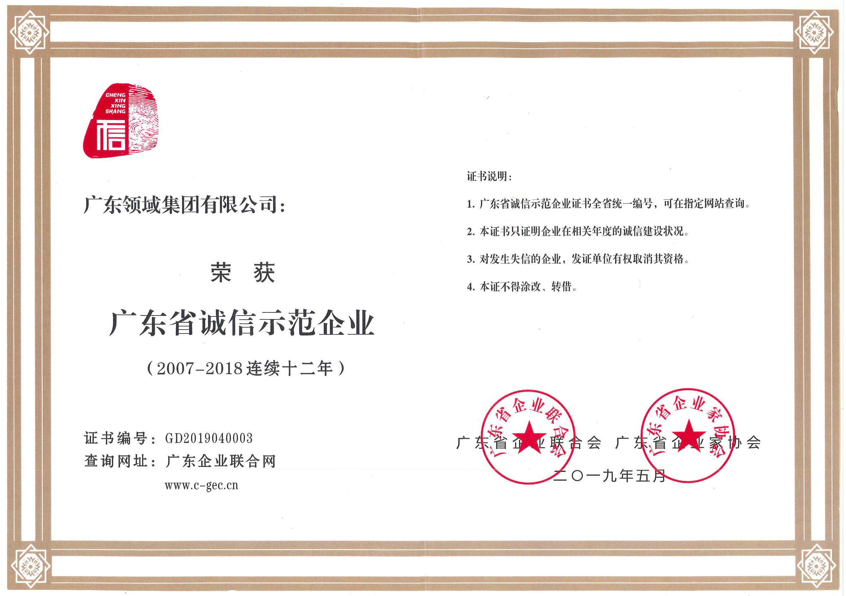 • 廣東省誠信示範企業