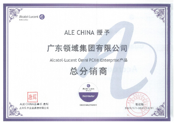 • Alcatel Lucent中國總分銷商證書(shū)